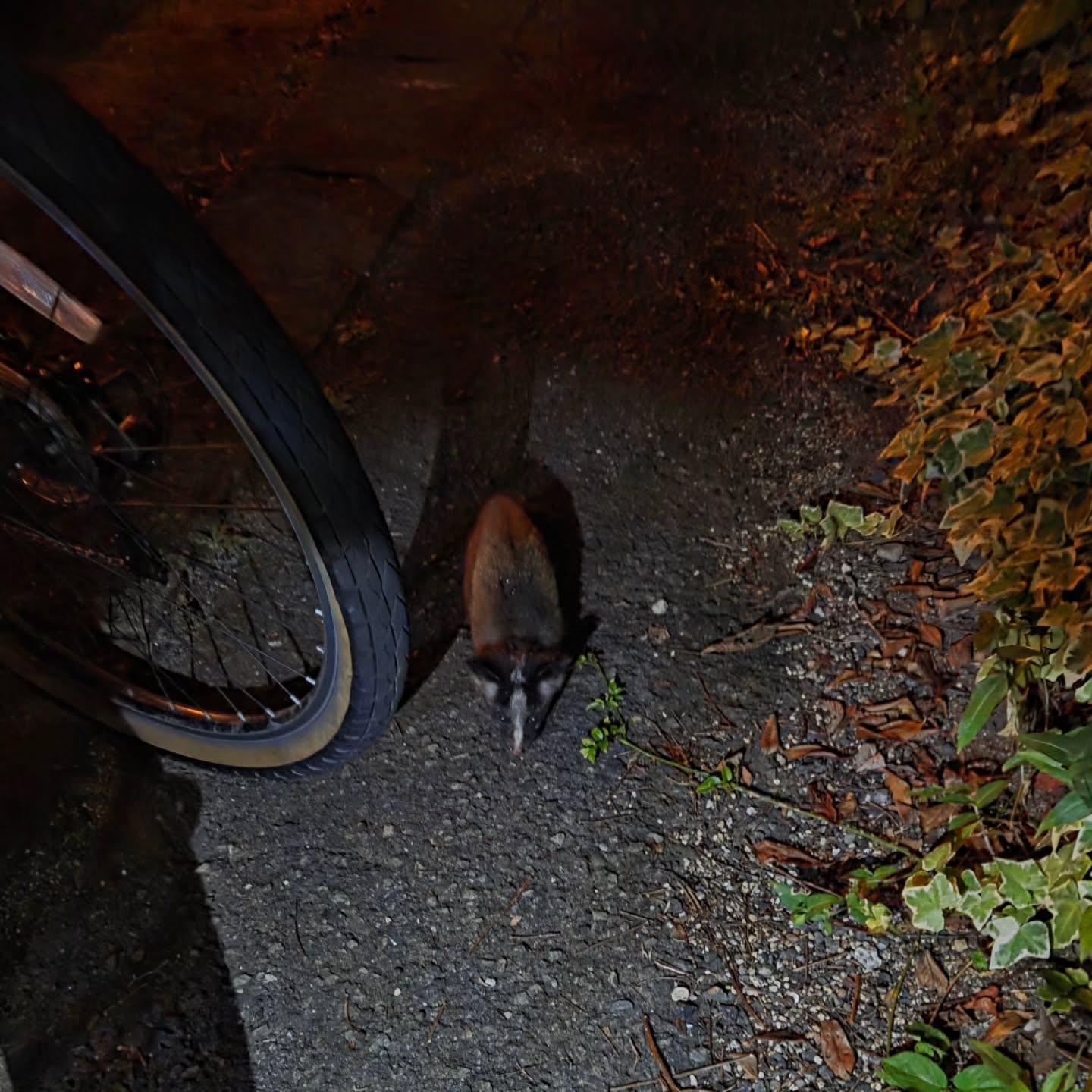 裏口を開けたら目の前直ぐに何かしらの生き物がいそうだったので、既に施錠した正面ドアから出てライト片手に確認する事にしました。