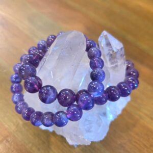 アメジストのボール(丸珠)です。 模様の面白い迫力の大玉です。 手前の透明な水晶は10㎜珠です。 比 […]