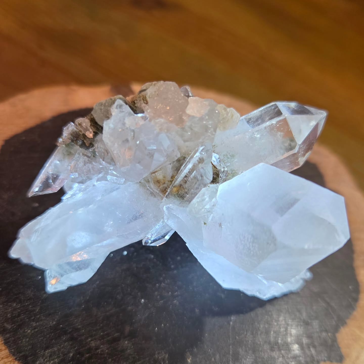 ちょっと小サイズですが、ちょっとだけガーデンな雰囲気があって面白みのある水晶です。